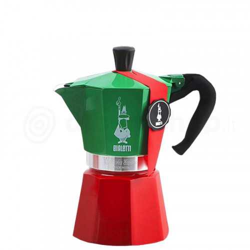 Cafetière Italienne Bialetti aux couleurs du drapeau Italien. Peinture résistante poignée anti-brûlures